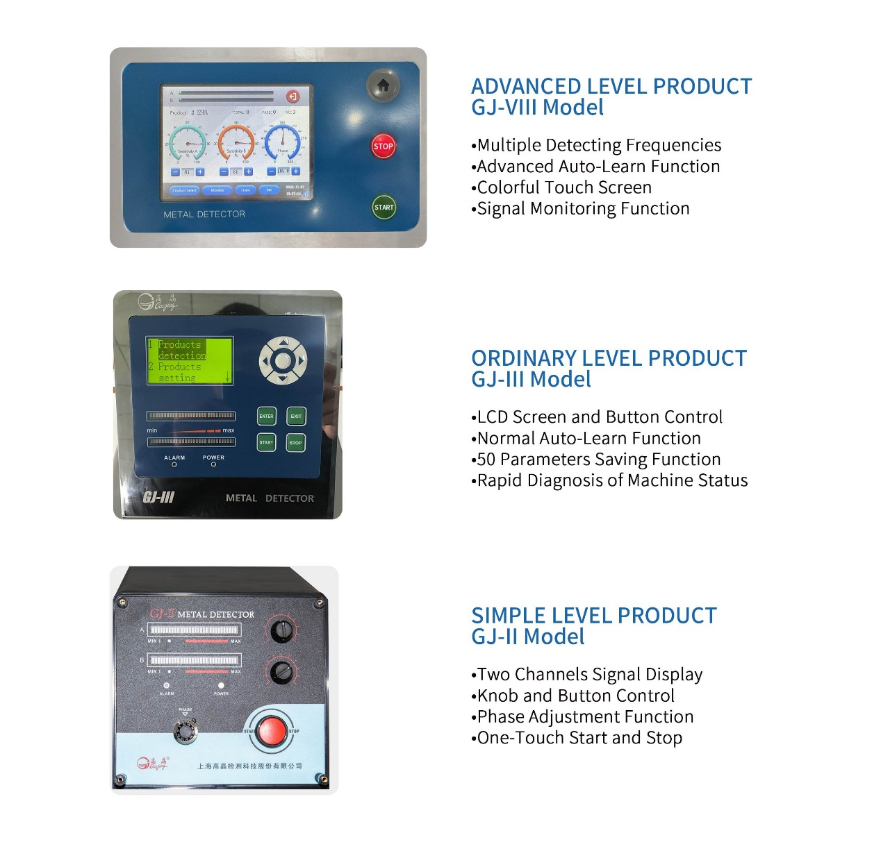 1.The above sensitivity is tested by standard testing piece in empty running conveyor, while the actual sensitivity with products will depend on the type, dimension, weight, package, composition, status of the products, position of the mixed contaminants and environment factors, etc.